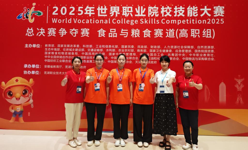 食品系指导教师韩莹感慨道:“每一个动作、每一处细节,学生们都反复琢磨、持续改进。直到比赛当天,他们仍在模拟演练,认真听取指导意见并迅速调整。工匠精神不是口号,而是对细节的执着、对困难的坚韧,正是这种态度,让每一位选手在‘苦与难’中淬炼出真正的技能功底。”