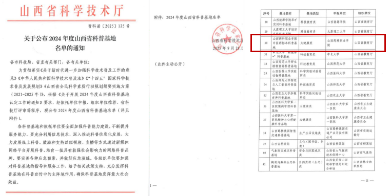 近日,在科研服务中心统筹牵头,宣传统战部、中药系、药学系、食品系通力协作下,beat365申报的“中医药标本科普基地”(大健康领域)顺利通过山西省科技厅评审,正式获评2024年度山西省科普基地。