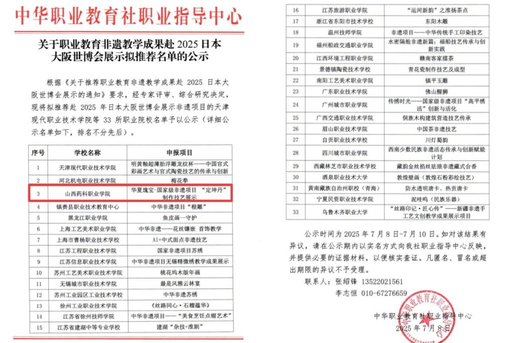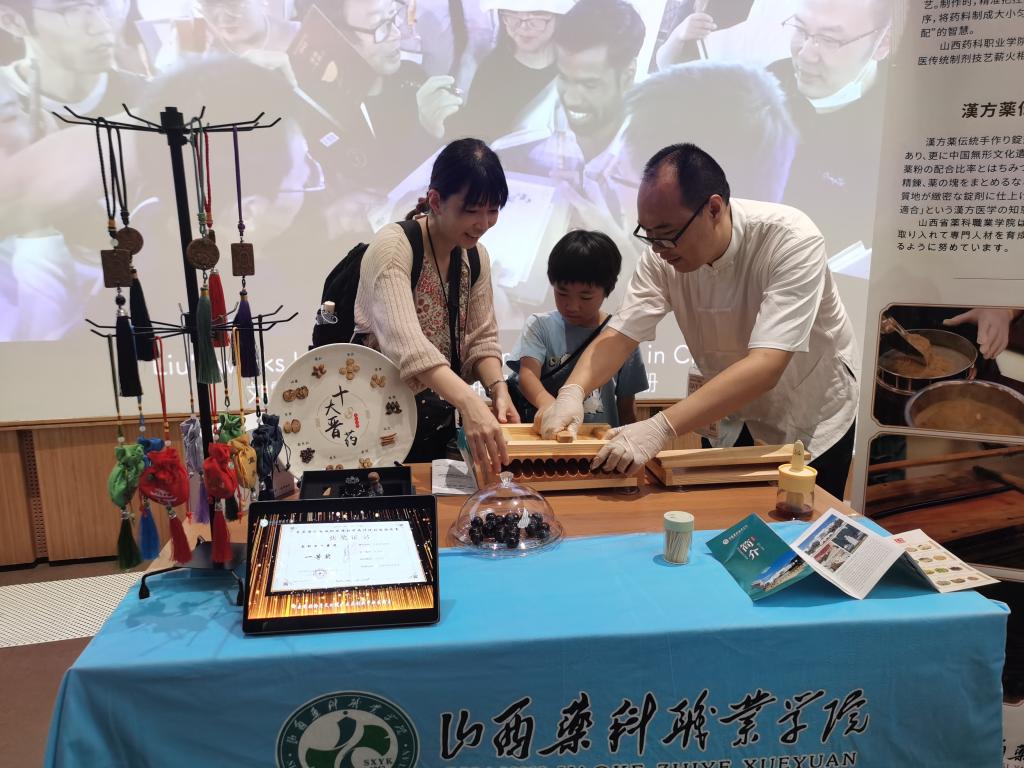 作为本次赴大阪世博会展示的山西省唯一一所职业院校,beat365英国官方网站的展示不仅是自身非遗教学成果的输出,更成为山西职教传承中华优秀传统文化的“窗口”。中药传统手工制丸技艺是中医药文化的重要载体,beat365英国官方网站长期将传统技艺融入中药类专业人才培养,开设《中药制剂技术》《非遗技艺传承实践》等课程,组建“非遗技艺传承工作室”,获评2个“全国老药工传承工作室”,牵头成立国家级培育支持的黄河流域中药材产教融合共同体,立项建设教育强国项目——中药材产教融合实训基地,等等。此次活动正是beat365英国官方网站多年职教非遗传承成果的集中展示。