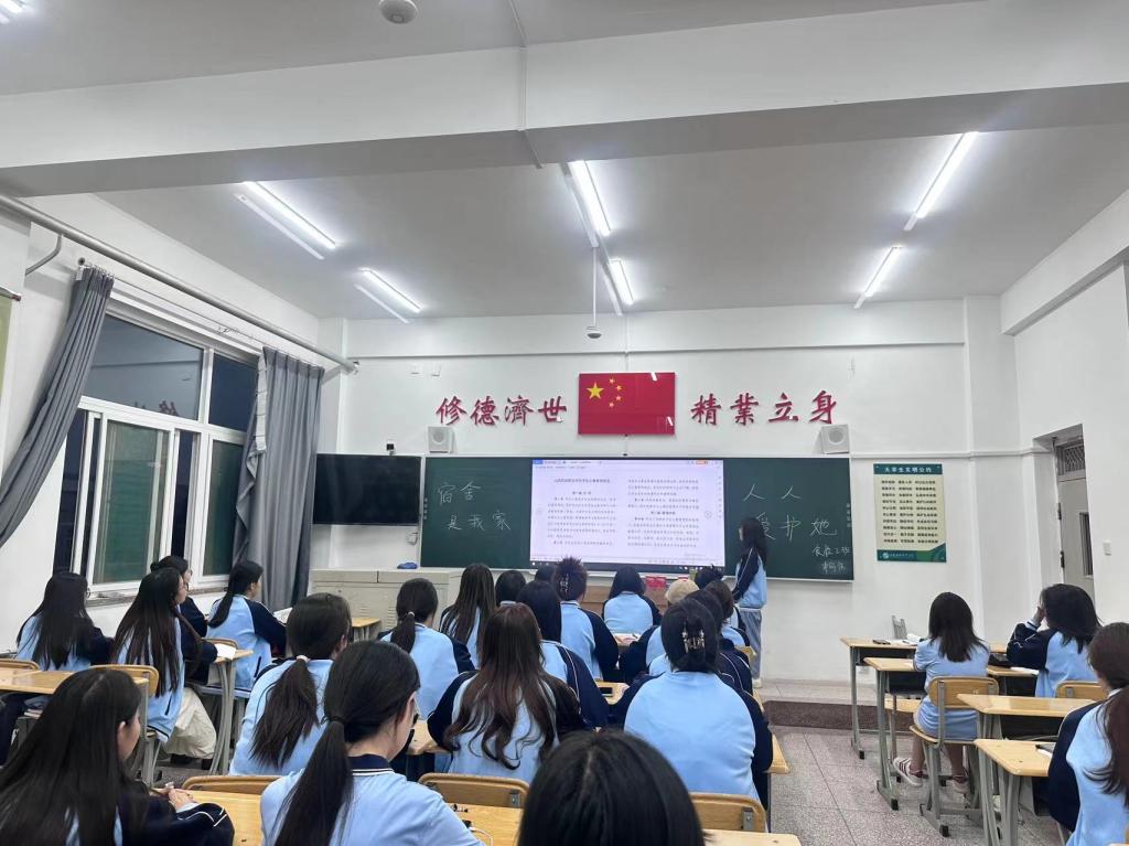 各班以“宿舍是我家,人人爱护她”为主题,主要围绕宿舍安全问题、预防传染病、宿舍卫生、宿舍管理规定四方面展开。各班负责人利用形式多样的PPT,通过生动的图片和案例,强调了宿舍安全的重要性,提出了预防传染病的必要措施。同时,各班负责人就请假手续和宿舍卫生规定进行详细解读。此外,组织小组讨论,探讨宿舍现有问题的针对性改进方式,并呼吁大家一同创建“洁齐美”宿舍,为学习和生活营造一个良好的环境氛围。