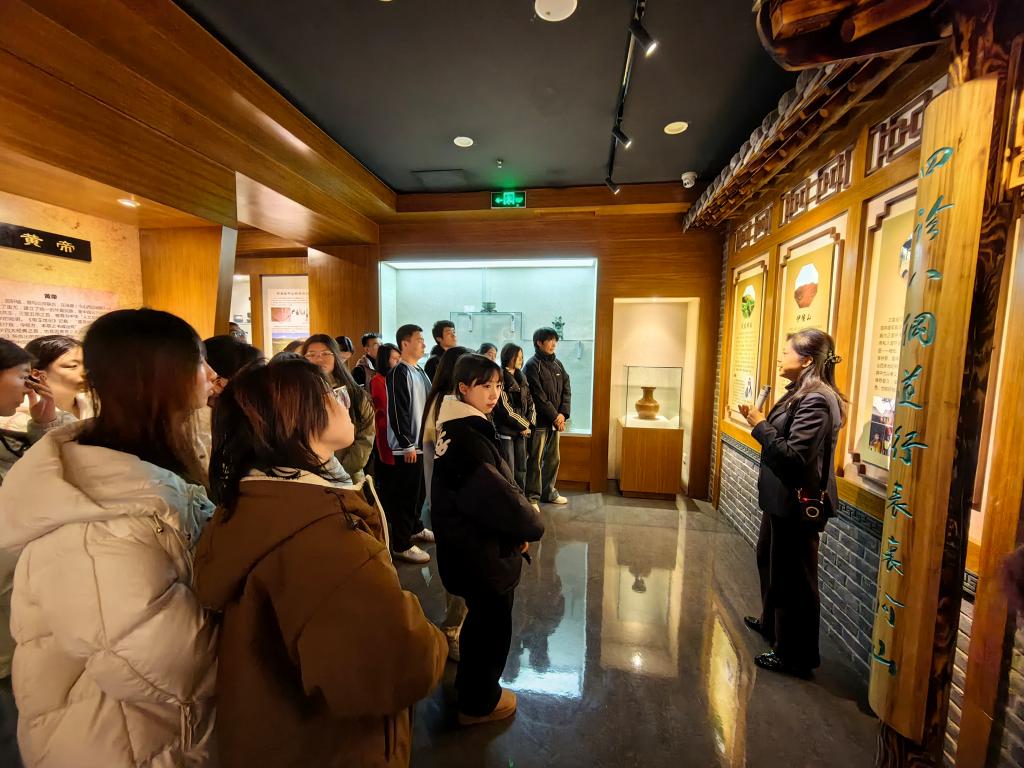 “岐黄道业,源远流长。伏羲画卦,昭示阴阳。投针丸艾,医海滥觞。炎帝神农,百草始尝。本经传世,参产上党……”走进山西中医博物馆,笔走龙蛇、行云流水般的《山西中医颂》便跃入眼帘。在博物馆赵敏馆长的带领下,师生们参观了中医展览馆、中药标本馆、院史馆。在中医展览馆,大家感受了国医源流,中医药起源于先民的生产生活实践,一系列鲜活的实物器具和丰富的神话传说,为我们展现了穿越时空的历史画卷。在标本馆,大家参观了具有地域特色的山西道地中药材,了解诸多三晋名医,体悟中医药文化的多样性。在院史馆,大家领略了山西省中医院的建设历程与历代医家的重要贡献,感悟了中医精神的延续与传承。