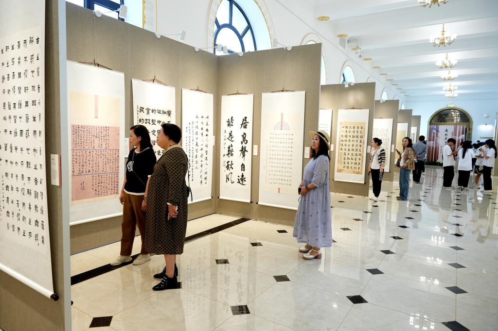 展览现场,200余幅精选自全省大中小学教师创作的优秀书法、国画作品令人目不暇接、大为赞叹。这些作品不仅展示了教师们扎实的艺术功底,更蕴含了他们对教育事业的赤诚情怀和砥砺担当。“这次活动不仅是一场视觉与心灵的盛宴,更是情感交流的桥梁、文化传承的纽带,作品中传达了浓厚的师者情怀和强烈的责任担当,让我备受感动。”素质教育教学研究部教师高洁深有感触地说道。同学们则无不赞叹,在感受艺术滋养和启迪的同时,更深刻体会到老师们的教诲之恩,心中充满敬意与感激之情。