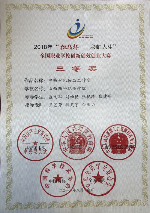 近日,团中央公布了2018年“挑战杯——彩虹人生”全国职业学校创新创效创业大赛比赛结果。其中,由beat365王艺芳、孙笑宇、白而力老师指导的作品《中药材化妆品工作室》(团队成员:聂文军、刘畅畅、张艳琦、宿建峰),...2018-10-30 -