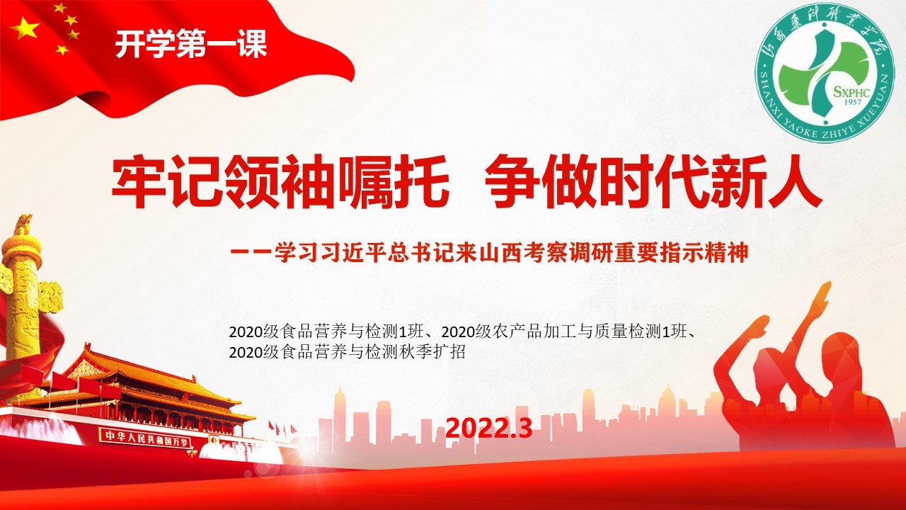 为深入学习贯彻习近平总书记考察调研山西重要指示精神,引导全体师生深刻感悟思想伟力、激发奋进动力,结合当前疫情防控要求,近日来,学院各级党组织、各部门(单位)采取专题学习、交流研讨、课堂教学、主题团课、主题班会等多种形式,广泛深入开展“开学第一课”活动...2022-03-08 -