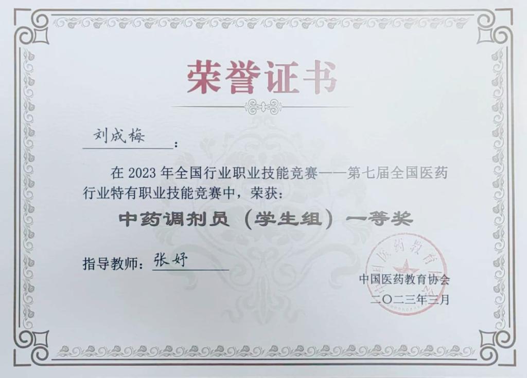 beat365学生在第七届全国医药行业特有职业技能竞赛中药调剂员赛项中荣获佳绩