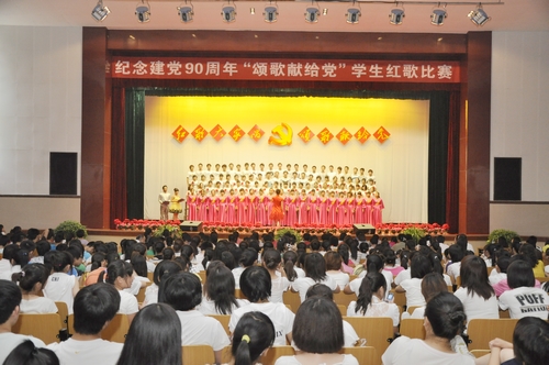 6月15日下午,由学工部、院团委组织的庆祝建党90周年“颂歌献给党”学生红歌比赛在学院大礼堂隆重举行。学院党委书记张瑞芳,党委副书记、院长李华荣,党委副书记、纪委书记龚晋文,党委委员、副院长尹士优、胡尔雅、...2011-06-17 -