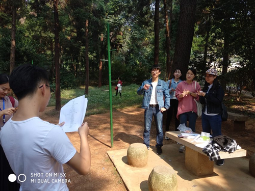 最后的定向越野,关卡设置灵活,任务点遍布烈士公园多个方位,关卡内容有你画我猜、知识碰撞、畅谈家乡变化和健身接力四个环节,其中“你画我猜”考验了组内成员的协调配合能力,考察了大家对党章党规、十九大相关内容的了解度,寓教于乐,使党员深入学习十九大会议精神,增强党性修养;“知识碰撞”将护理和资安专业知识融合一起,要求互答对方专业的基础性知识问题,促进了专业之间的交流。“畅谈家乡变化”需要支部成员介绍家乡自十八大以来所发生的变化,并表达对未来美好生活的向往;“健身接力”需要大家勇于拼搏,组内成员团结协作去完成各项接力活动,增强了团队凝聚力。