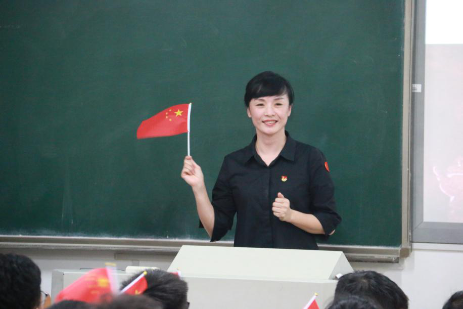 随后,在陈嘉老师的带领下,全体同学挥舞手中的红旗,合唱了歌曲《我和我的祖国》。歌声飞扬课堂,同学们用青春告白祖国,在课堂上唱出了自己对祖国母亲的爱和祝福。
