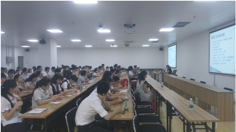 急救培训课程主要包括了心肺复苏术(CPR)、异物阻塞气道、出血及伤口包扎、固定、电机伤、烧伤、踩踏等紧急情况的处理。陈嘉教授以最新的实例导入让在座的学员大体的了解此次培训的主要内容,采取理论加实践的教学方式利用模拟道具进行了现场讲解及演示,参训人员表现出了极大的兴趣,边听边记,与培训教师积极互动。理论结束后的心肺复苏术(CPR)实操将整场培训推向了高潮。参训人员分为三组进行实践,将心肺复苏术的基本过程完整、细致的演绎出来。参训人员为陈嘉教授激情的授课态度、生动的案例、规范的操作所折服,表示受益匪浅。