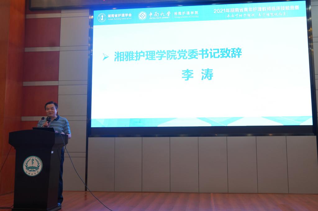 竞赛开幕式在bat365在线平台网站登录湘雅医学院福庆楼四楼报告厅举行。bat365在线平台网站登录党委书记李涛,院长唐四元,副院长李映兰,湖南省护理学会护理教育专业委员会主任委员王红红,副主任委员邓露,湖南省青年护理教师临床技能竞赛裁判长陈嘉等出席开幕式。湘雅护理学院副教授刘民辉主持开幕式。