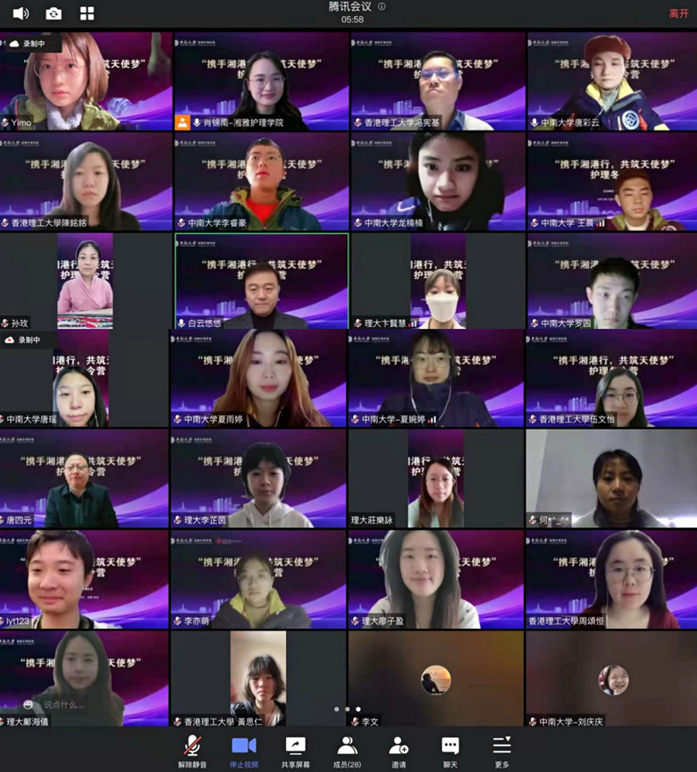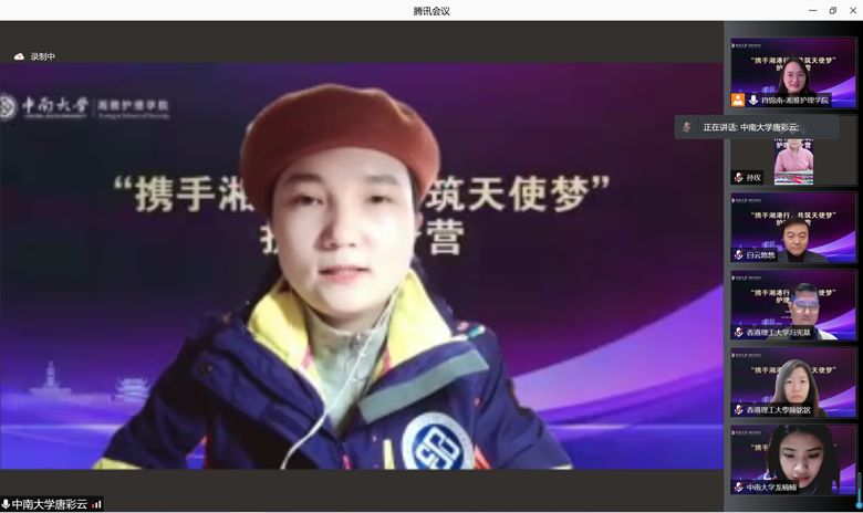 2021年12月18日上午9点,2021“携手湘港行 共筑天使梦”护理冬令营线上开营仪式顺利举行。bat365在线平台网站登录港澳台事务办公室白毅主任,bat365在线平台网站登录院长唐四元,bat365在线平台网站登录孙玫,bat365在线平台网站登录学生办公室主任李文、香港理工大学交流活动联络主任冯宪基出席本次开幕式。开幕式由bat365在线平台网站登录青年教师肖锦南主持。