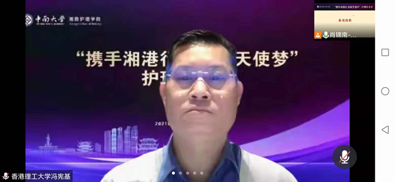 接着,香港理工大学交流活动联络主任冯宪基致辞。冯宪基代表香港理工大学护理学院全体师生向教育部对此次活动的大力支持、bat365在线平台网站登录师生的精心筹备表示衷心的感谢,冯老师表示两院的交流和友谊不会因为疫情而阻断,并希望通过此次线上交流活动可以更好地了解祖国文化及bat365在线平台网站登录的发展。