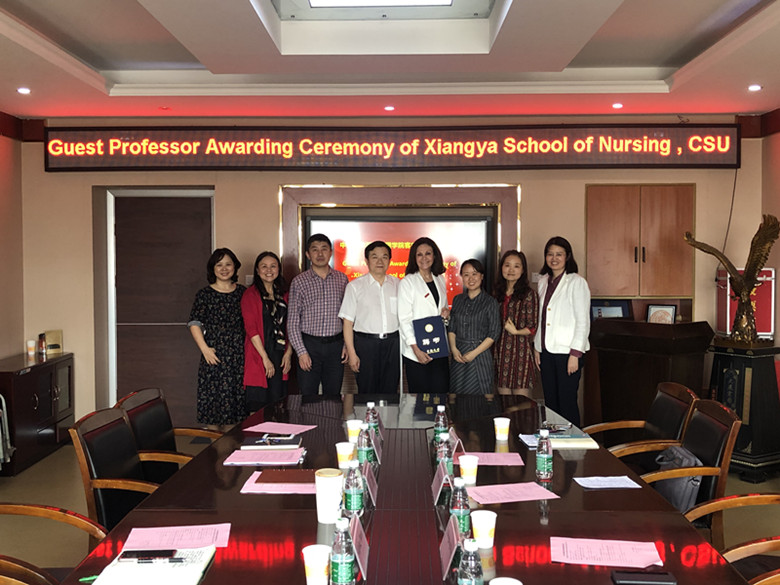 On the afternoon of April 24th, Nancy Radcliffe Reynolds, a professor from Johns Hopkins University, was invited to be the visiting professor of Central South University at the appointment ceremony held in the meeting room 637 of Xiangya Nursing School. Deputy Dean Li Xianhong hosted the ceremony. Secretary Li Tao read out the appointment decision and presented the appointment letter. He congratulated Professor Nancy Radcliffe Reynolds on becoming a visiting professor of Central South University. He hoped that Professor Nancy could make use of her academic resources and influence to help the development of our nursing school. Professor Nancy spoke afterwards, saying how happy she was to have won the prize. Professor Nancy looked back with pleasure on the past 12 years of communication and cooperation with Xiangya Nursing School. She said that all the teachers and students of Xiangya Nursing School have worked together to create a good academic culture and scientific atmosphere in the school, and she really felt the rapid and vigorous development of Xiangya Nursing School. Johns Hopkins University Nursing School is one of the top nursing schools in the United States. Xiangya Nursing School is one of the top nursing schools of China. Professor Nancy said she is willing to continue to make two first-class universities the bridge and link, communication and cooperation to high-tech talent training and discipline for the school to make their own contribution to the development of further.