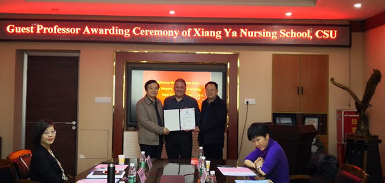 On the afternoon of March 21, 2019, visiting Professor Lloyd A Goldsamt, senior research fellow of Rory Meyers School of Nursing, New York University, was invited to be visiting professor of Xiangya School of Nursing, Central South University at the 637 Conference room. The leaders of all the schools and related functional departments of Xiangya Nursing School of Central South University, the nursing department and clinical faculty representatives of Xiangya Hospital, The second Xiangya Hospital and the third Xiangya Hospital of Central South University attended the visiting professor appointment ceremony. Vice President Li Xianhong presided over the ceremony.
