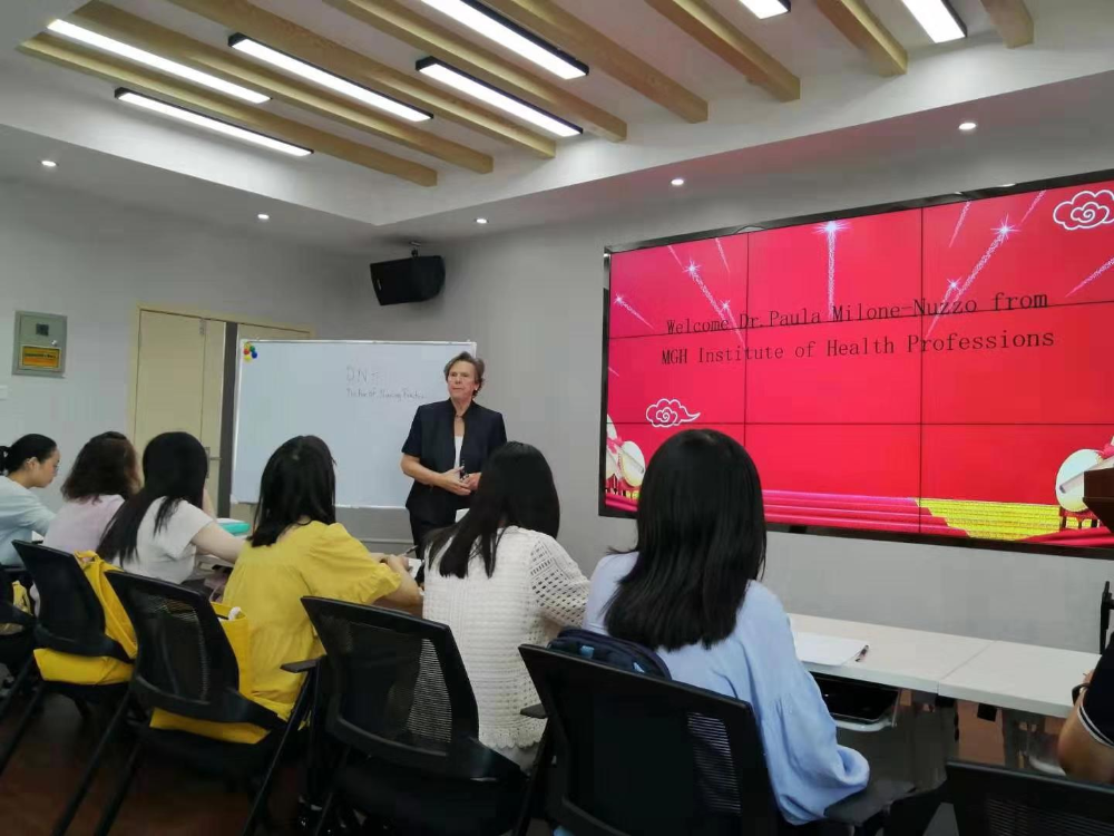 The lecture was given by Paula Milone-Nuzzo, Dean and Professor of the College of Nursing at The Pennsylvania State University and the sixth president of the MGH Institute of Health Professions who has made great contributions to home health care, primary care nursing, and care for the elderly. She has given more than 100 lectures both nationally and internationally, consulting extensively for health care and academic organizations in China.