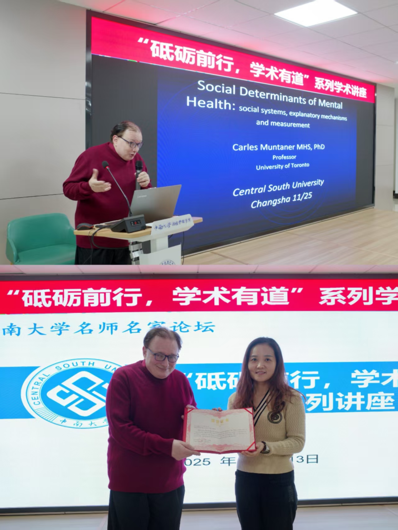 2025年11月13日晚,“砥砺前行,学术有道”系列学术讲座第154期在bat365在线平台网站登录416学术报告厅顺利举行,腾讯会议同步展开。此次讲座特邀加拿大健康科学院院士、美国霍普金斯大学公共健康学院的Carles Muntaner教授以“Social determinants of mental health”为题做主题讲座,吸引了包括留学生在内的100余名护理师生参加。bat365在线平台网站登录副院长郭佳教授主持讲座。Carles Muntaner教授围绕心理健康问题的社会决定因素(SDOMH),从...