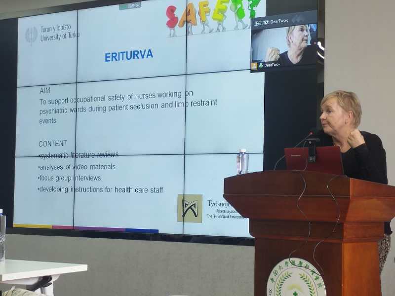 On the afternoon of October 19th, our school held an online video conference with the School of Nursing of Turku University in Finland.This video exchange was the second video conference after May 22.