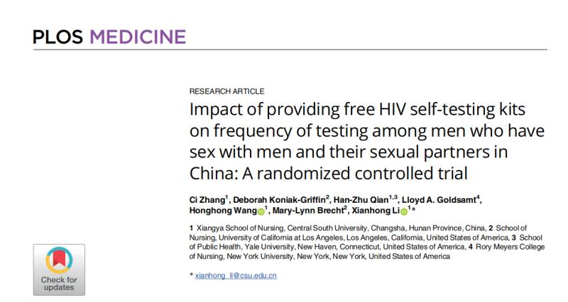 Recently, Professor Li Xianhong's team published an original work entitled Impact of providing free HIV self-testing kits on frequency of testing among men who have sex with men and their sexual partners in China: A randomized controlled trial.(IF:10.5) Doctoral student Zhang Ci is the first author, professor Li Xianhong is the corresponding author, and Xiangya School of Nursing, Central South ...