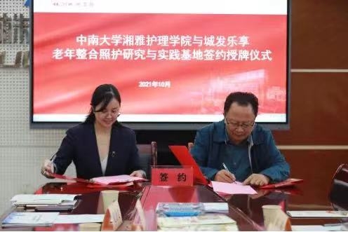 Elderly Integral Care Research and Practice Base officially approved. The two sides (Xiangya School of Nursing, Central South University and Cheng Fa Le Xiang company) will cooperate in the scientific research, personnel training, social service related to elderly care. This cooperation will play full advantages of theory and practice. They will promote technologies in medicine, nursing, home care, and rehabilitation related to elderly care, and pilot application and market transformation of the related research outcomes. They aim to jointly create a Research and Practice Demonstration Base, which can be reproduced and promoted, on the integrated care of medicine, nursing, home care, and rehabilitation.