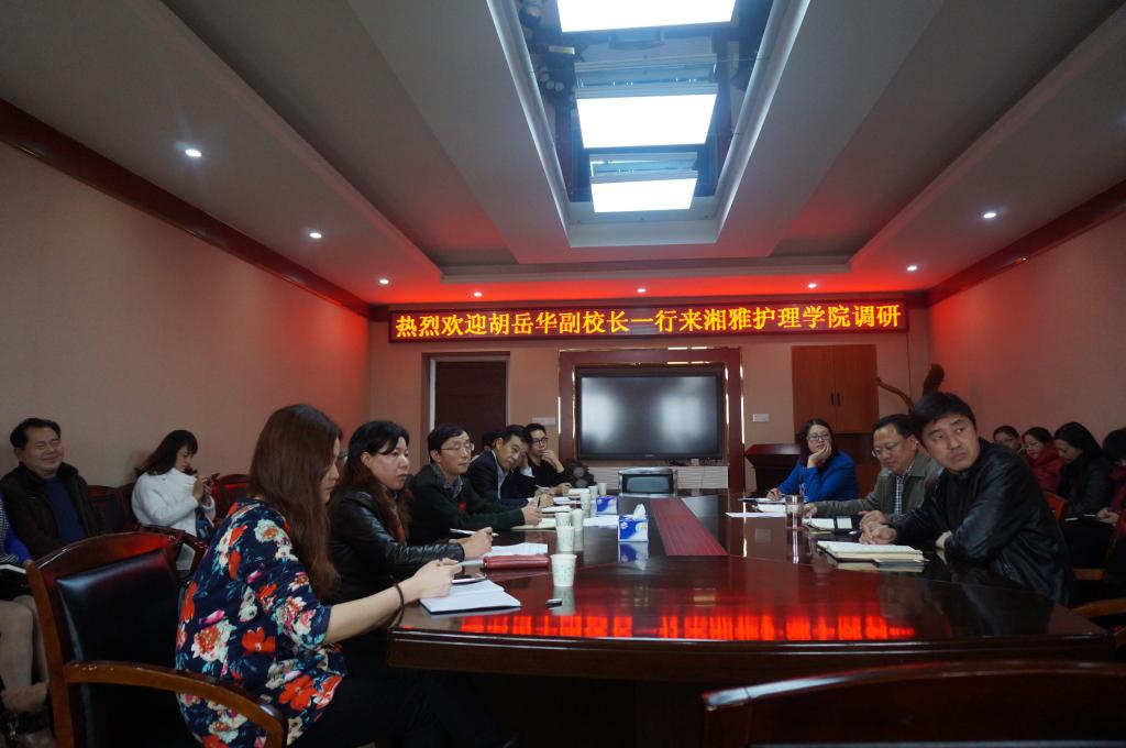 2015年1月13日下午,胡岳华副校长在本科生院院长黄建陵等的陪同下到bat365在线平台网站登录进行调研。bat365在线平台网站登录党委书记罗军飞、院长唐四元、副院长王红红、副书记袁世平及bat365在线平台网站登录全体教职员工出席会议。