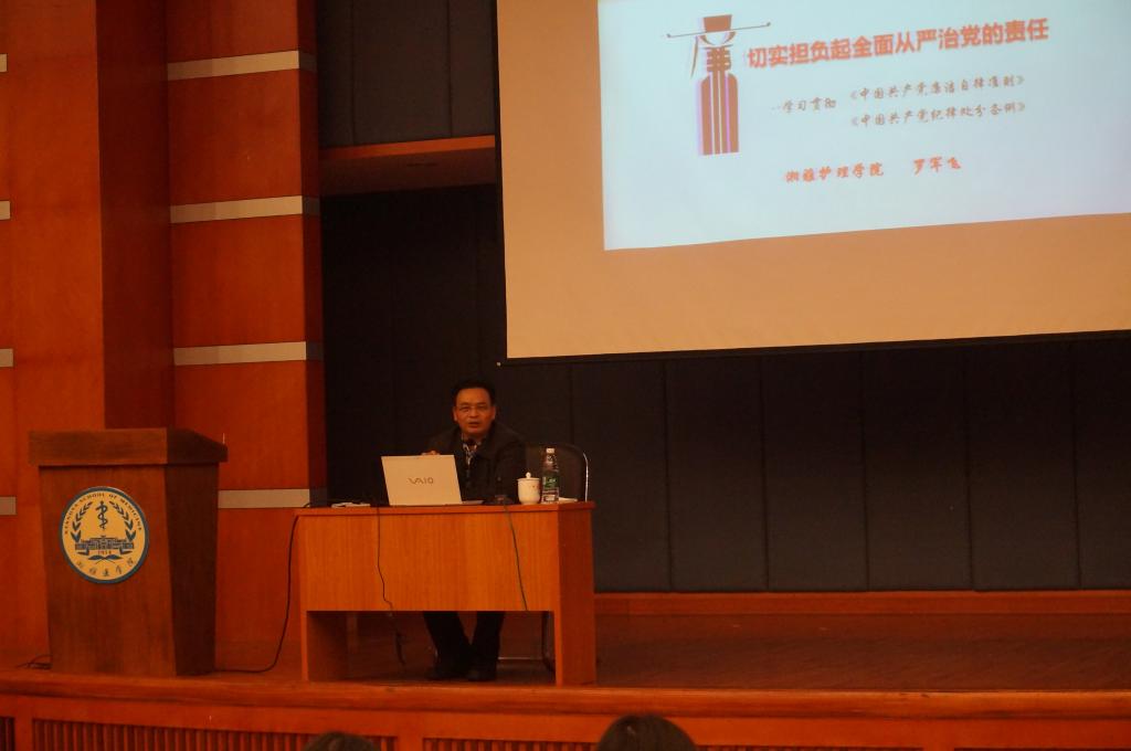 2015年12月2日中午,bat365在线平台网站登录党委学习贯彻《准则》、《法规》党课在前栋学术报告厅开讲。主讲人党委书记罗军飞为大家上了一堂题为“切实担负起全面从严治党的责任“的党课。党课由副院长、党委纪检委员王红红教授主持。学院全体党员和部分入党积极分子参加...