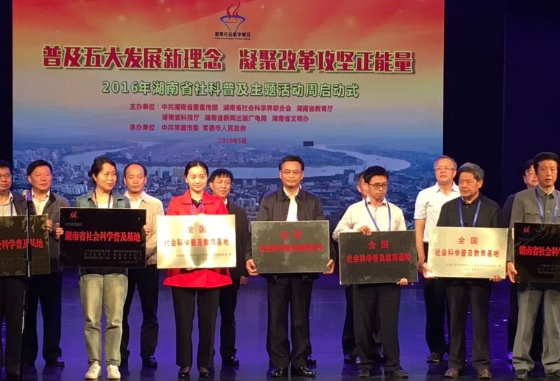 近日,bat365在线平台网站登录健康护理研究中心在全国第十七次社会科学普及工作经验交流会上,被授予“全国社会科学普及教育基地”荣誉称号,成为本次湖南省获评的四家单位之一。授牌仪式于2016年5月9日在湖南常德举行。湖南省人大副主任谢勇、湖南省政协副主席欧阳斌出席会...