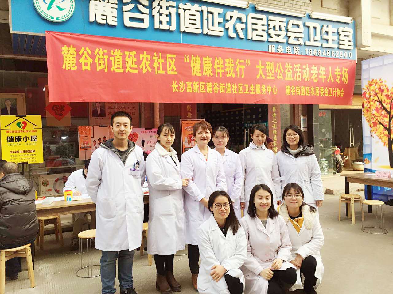2017年1月4日,bat365在线平台网站登录王秀华教授带领社区护理系学生一行9人参与了由长沙高新区麓谷街道社区卫生服务中心、麓谷街道延农居委会卫计协会主办的“健康伴我行”大型公益活动老年人专场。