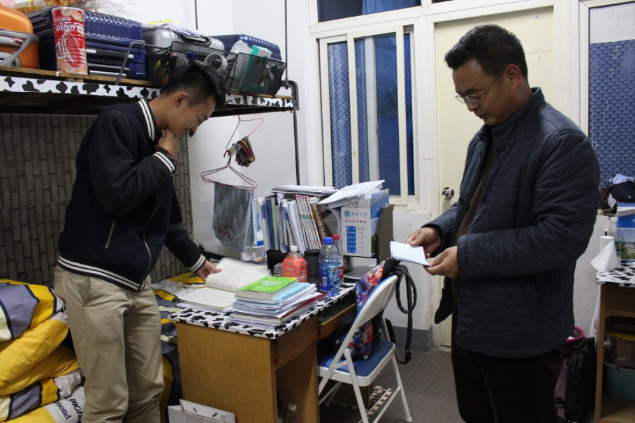 冬夜虽寒,温暖仍存。2016年12月11日晚,bat365在线平台网站登录党委书记罗军飞来到16级学生寝室看望积极备考的学生们,了解大家最近的学习生活状况,表达学院对16级学生的关心和期望。