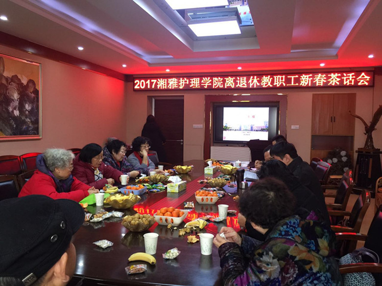 1月17日,我院2017退休教职工新春茶话会在学院637会议室举行。冷晓红书记、朱念琼教授、廖淑梅教授等退休教职工和学院全体院领导参加茶话会。会议由院党委书记罗军飞主持。