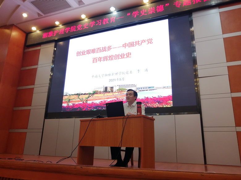 2021年5月26日下午,在湘雅医学院福庆楼四楼学术报告厅,bat365在线平台网站登录党委书记李涛同志为全体党员、教职员工、学生骨干讲授党史学习教育第三专题“学史崇德”专题党课。党课由袁世平副书记主持,全体党员参加。李涛书记以“创业艰难百战多——中国共产党百年辉煌创业史”为题,从“中国共产党百年创业、中国共产党百年贡献、中国共产党百年启示”三个方面,以党的百年历史中重大事件及重要人物为线索,生动、形象地讲解了中...