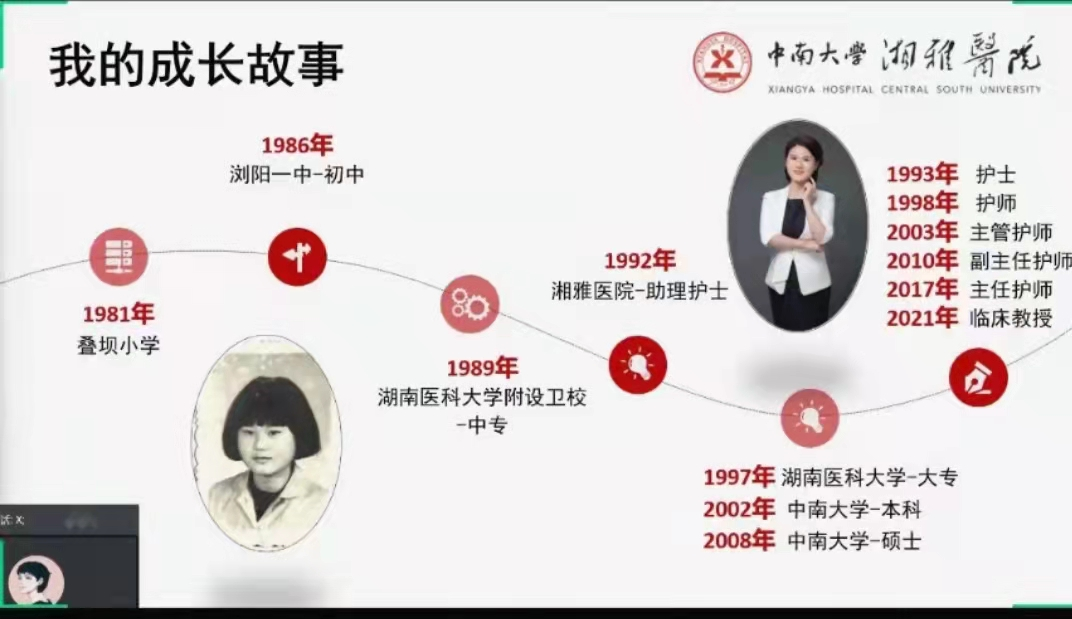 2021年12月8日中午12:30,“砥砺前行,学术有道”系列学术讲座之“我和我的护理科研”在孝骞楼714顺利举行,腾讯会议同步展开。此次讲座由bat365在线平台网站登录湘雅医院张京慧老师主讲。张京慧老师根据自己的成长经历和科研心路历程给我们讲述了为什么要做护理科研,如何做护理科研。讲座伊始,她以自己的学习成长的故事为引言,讲述了她是怎么从不敢尝试科研到如今成为临床教授,从而解释了我们为什么要做护理科研。之后,她以自己申请国....