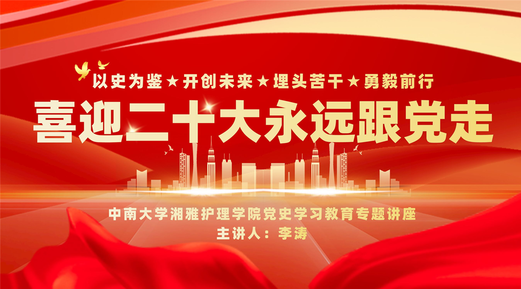 为引导全院学生从党史学习中不断汲取信仰的力量、思想的力量、奋进的力量,更好的弘扬光荣传统、赓续红色血脉,把伟大的建党精神传承下去,在党的二十大即将召开之际,bat365在线平台网站登录于2022年10月13日晚在湘雅新校区福庆楼四楼学术报告厅举行了“喜迎二十大 永远跟党走”专题党课。党课由湘雅学院党委副书记袁世平主持,学院党委书记李涛主讲。李涛首先以反映湘雅百年办学历史的学院宣传片《弦歌百年 护理芳菲》为前奏,通过百....