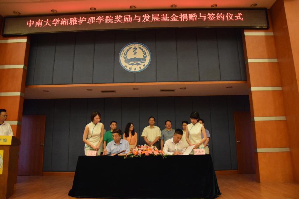 在中国共产党诞辰94周年之际,2015年6月23日下午,bat365在线平台网站登录奖励与发展基金捐赠签约仪式在湘雅医学院前栋4楼学术报告厅隆重举行。bat365在线平台网站登录党委副书记高山、基金捐赠人、恩孚集团董事长吕东升先生、bat365在线平台网站登录党委组织部副部长、党校常务副校长余文武...