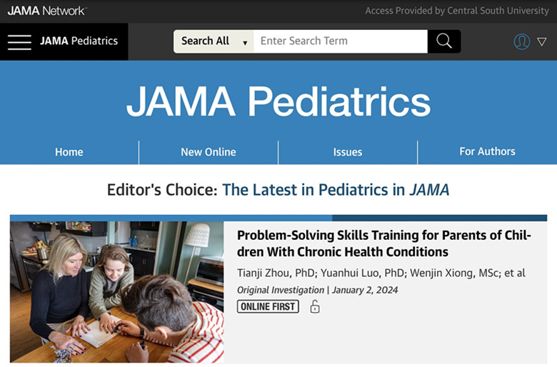 bat365在线平台网站登录张静平教授指导的精神心理护理研究团队在JAMA Pediatrics发表原创性论著