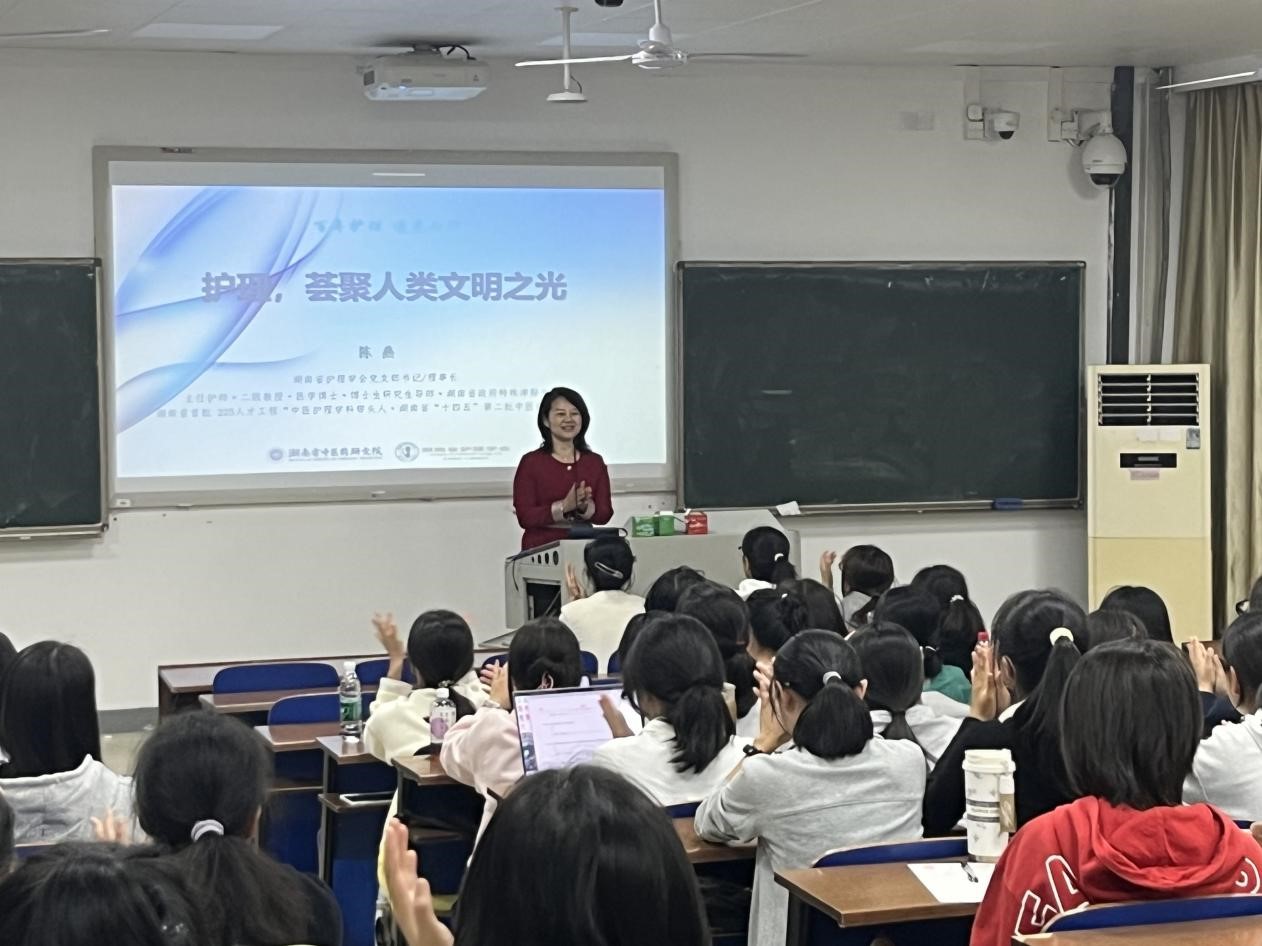 2024年10月30日晚上7点,bat365在线平台网站登录名师名家学术论坛之“护理,荟聚人类文明之光”在bat365在线平台网站登录新校区A座104顺利举行。此次讲座特邀湖南省护理学会理事长陈燕教授主讲,由谷灿副院长主持,2024级护理本科生全员参加。陈燕教授以时间轴为主线,为同学们深入讲解了护理学科的发展历程。主要分为四个部分:第一部分讲述了护理学科的崛起,并着重介绍了护理成为“国控专业”释放的积极信号:强质量、调布局。第二部分对国家相关政策进行...