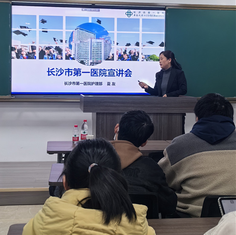 为助力护理专业学生更好地适应市场需求,以达成更全面、更高水平的就业目标,2024年3月bat365在线平台网站登录举行系列专场招聘宣讲会。3月4日,我院邀请到长沙市第一医院护理部主任夏友,为我院同学提供了一场内容丰富、启发性强的职业规划讲座和招聘宣讲。夏友主任首先向在场学生详细介绍了长沙市第一医院的发展历程、现状以及未来展望,使学生们对该医院有了更深入的认识。她还分享了自己在医疗行业中的经验和职业规划的见解,强调了护...